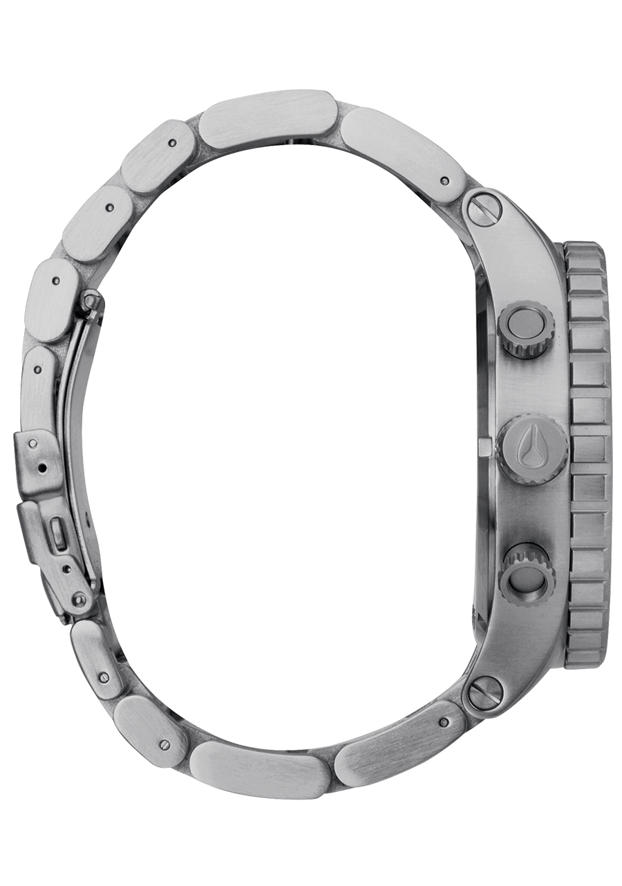 The 51-30 Chrono is constructed from solid stainless steel for the case and band, and features a hardened mineral watch crystal.