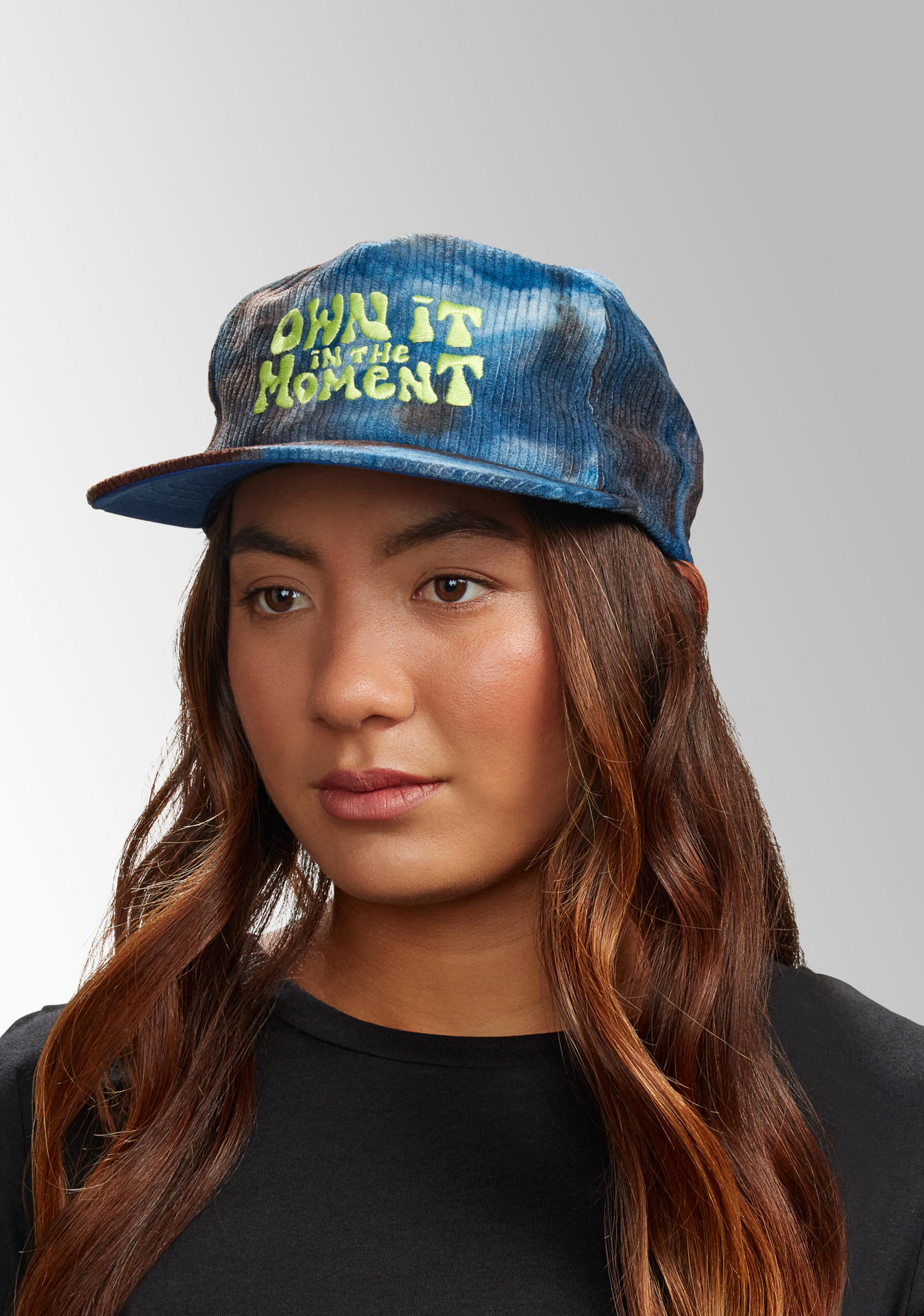 Own It in the Moment with tie-die visuals and 100% recycled polyester. Designed in collaboration with artist Hannah Eddy, this hat features her mantra to give your style extra uplift.