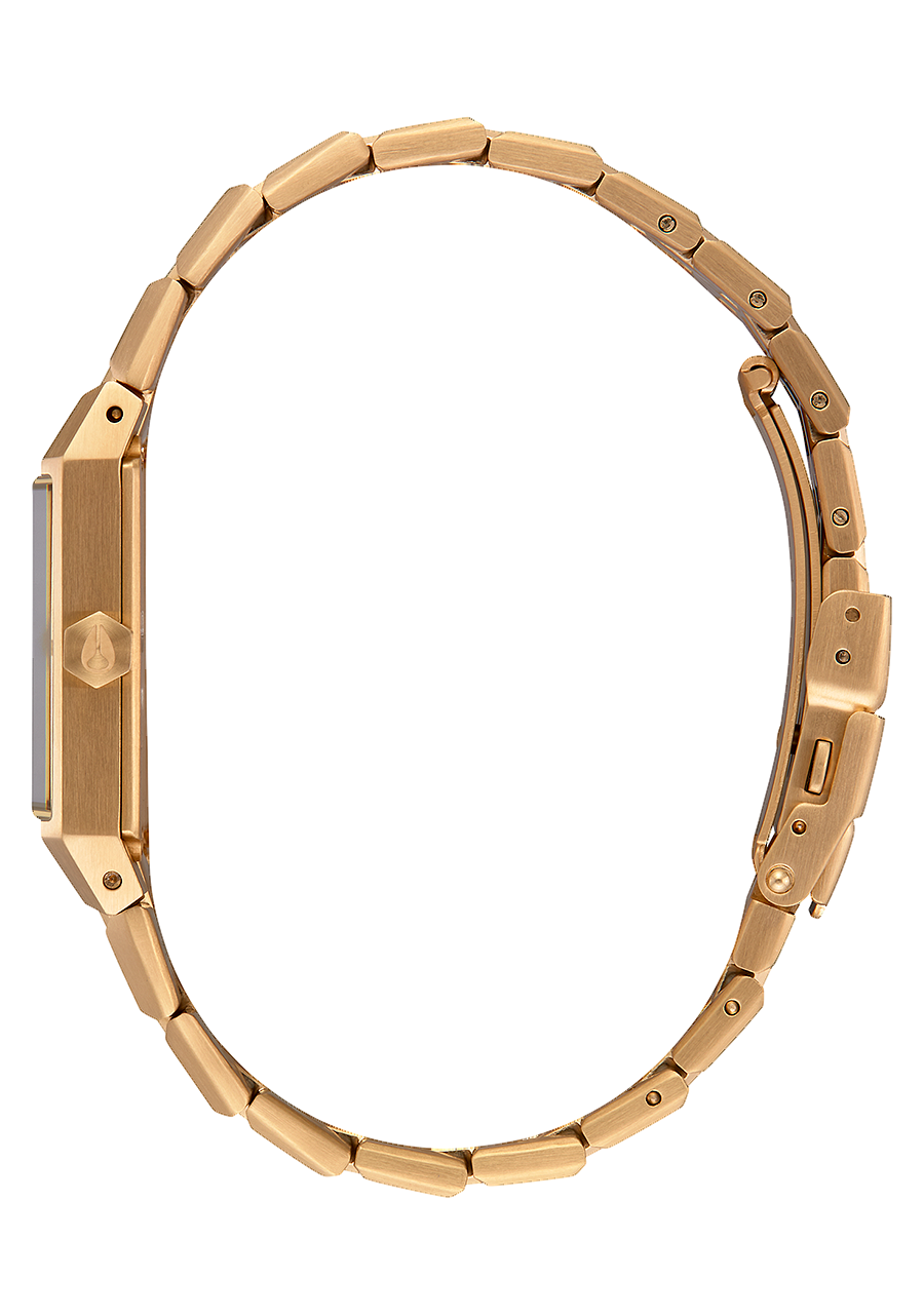34mm, 50 METER / 5 ATM custom stainless steel rectangle case, hardened mineral crystal, custom molded crown, stainless steel screw down case back