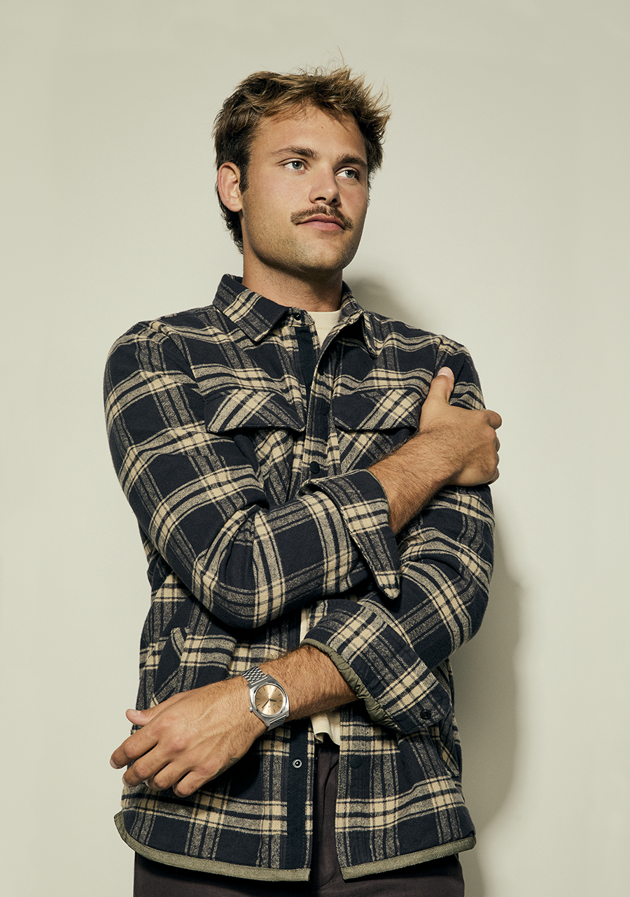 40.5mm custom solid stainless steel case and fixed bezel with a 100 meter / 10 ATM water rating. Comes with a hardened mineral crystal, triple gasket stainless steel crown, stainless steel screw down caseback and spring pin lugs.